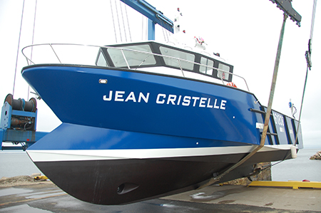 Le premier bateau de la série C.Robitaille45 vient d'être mis à l'eau au quai de Centre de construction navale du Nouveau-Brunsick à Bas-Caraquet. Le Jean Cristelle est le prmier de la série et servira de prototype pour les prochains acheteurs qui pourront faire construire leur bateau selon leurs exigeances.