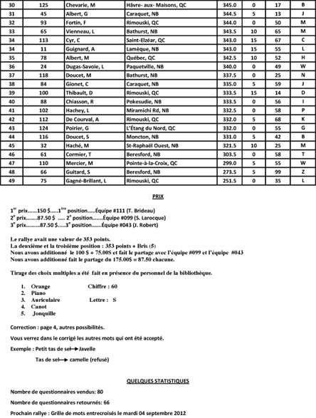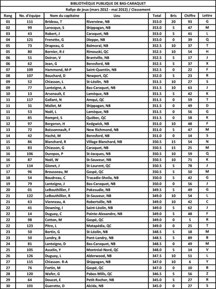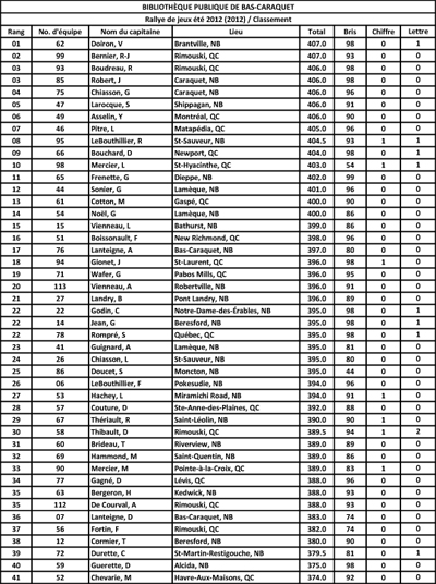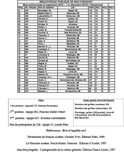 La Commission de la bibliothèque publique de Bas-Caraquet a un rallye de jeux du 31 mars 2012 au 29 mai 2012.
