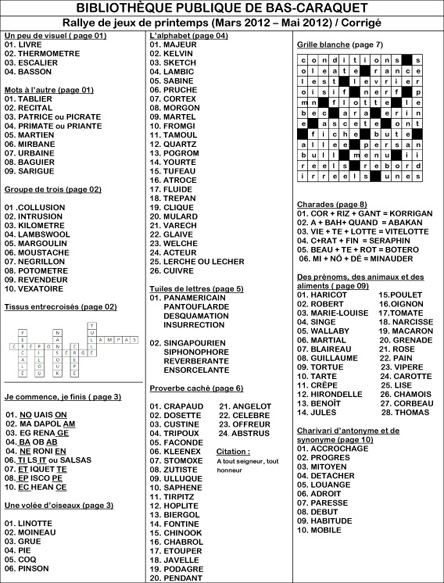 CORRIGÉ DU RALLYE D'ÉTÉ 2012
