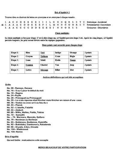 La directive devrait également avoir : Les 26 lettres de l’alphabet doivent se retrouvées en double dans l’un ou l’autre des mots du jeu. Ils ne sont pas en ordre alphabétique.