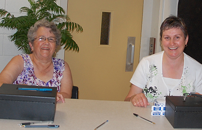 Denise Duguay et Pauline Vienneau accueillaient les participants et vendaient des billets de 50-50.