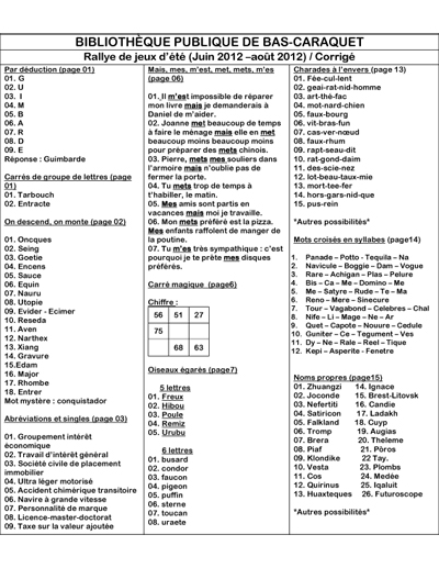 CORRIGÉ DU RALLYE D'ÉTÉ 2012