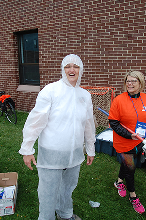 Le maire Agnès Doiron avait un vêtement protecteur...